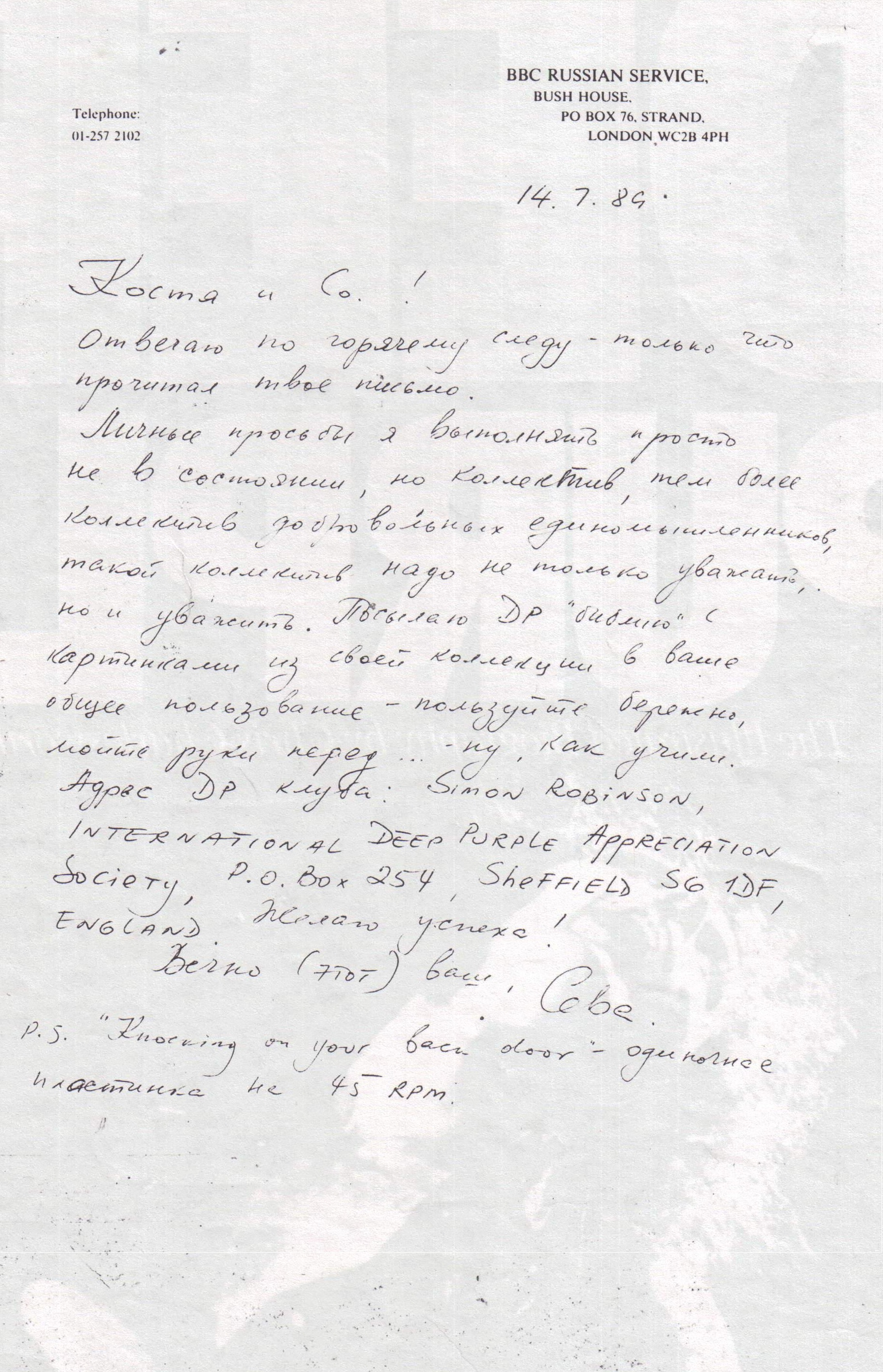 Konstantin was in touch a few times, and we helped where we could but it was difficult for him. We always had a lot of letters from USSR, and for a time we traded copies of the Russiian hits LP for UK albums which fans in Russia liked.